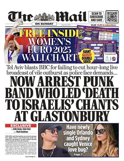 Hilariously, Bob Vylan also called out the BBC and now the establishment is in meltdown because they have lost control of the narrative. Anti-Zionism is cool, the youth know how badly we have been lied to about Israel, and no matter how much censorship comes next, no matter how many prosecutions we see, you aren't putting that toothpaste back in the tube.