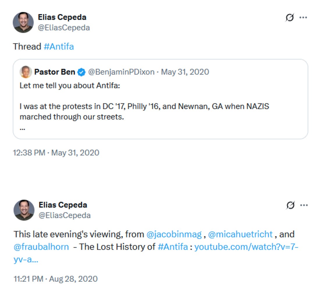 The DHS press release then lists half a dozen of Cepeda’s social media posts (recall NSPM-7’s focus on speech “indicators” of future terror attacks). The first couple posts are harmless, references to “Antifa” being the only part that stands out.