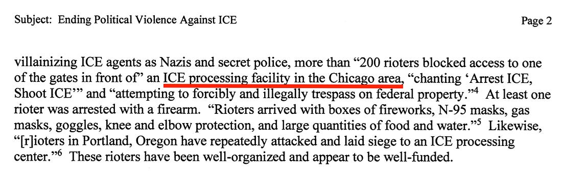 Several days after Trump signed the directive, Attorney General Pam Bondi responded with her own directive citing NSPM-7 and establishing an ICE protection task force, specifically mentioning the ICE facility in Broadview.