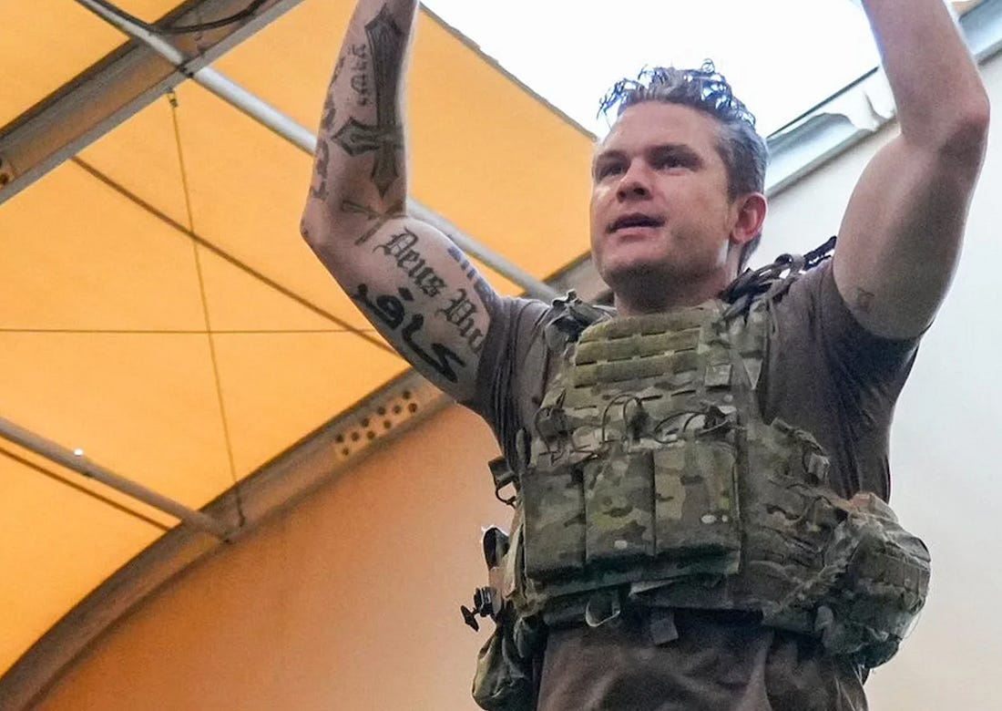 Perhaps this is not surprising for a figure like Hegseth who literally published a book in 2020 titled “American Crusade,” and has “DEUS VULT,” which he described as a Crusader battle cry, tattooed on his arm.