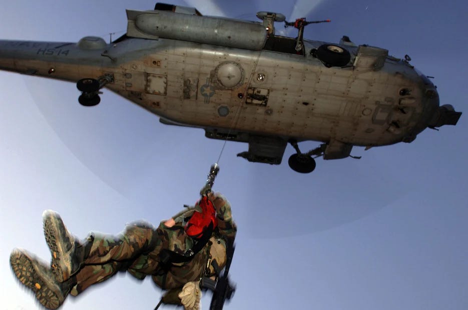 So, see how it works? Boots on the ground, a months-long ground war that smells like Iraq (or even Vietnam for the seniors), a mass mobilization, a draft, such stories fill the media and social media and in the end when the special operators come to the rescue, people are not only relieved but they “support” such an operation.